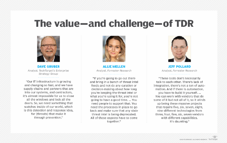 Comme l'explique Dave Gruber, analyste au sein de la division recherche et conseil Enterprise Strategy Group de TechTarget : « Plus vite nous détectons, plus vite nous pouvons contenir, et plus vite nous pouvons empêcher les malfaiteurs de commettre des actes vraiment malveillants et odieux. »