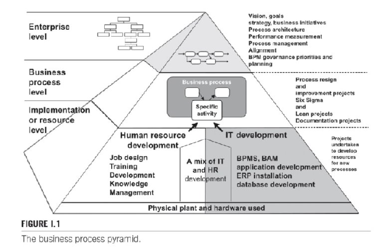 Dans Business Process Change, Harmon soutient qu'il est utile de distinguer les différents « niveaux d'intérêt » dans les initiatives BPM, qu'il identifie comme étant le niveau de l'entreprise, le niveau des processus métier et le niveau de la mise en œuvre ou des ressources. « Les projets ou activités à différents niveaux nécessitent différents participants, différentes méthodologies et différents types de soutien », écrit-il.