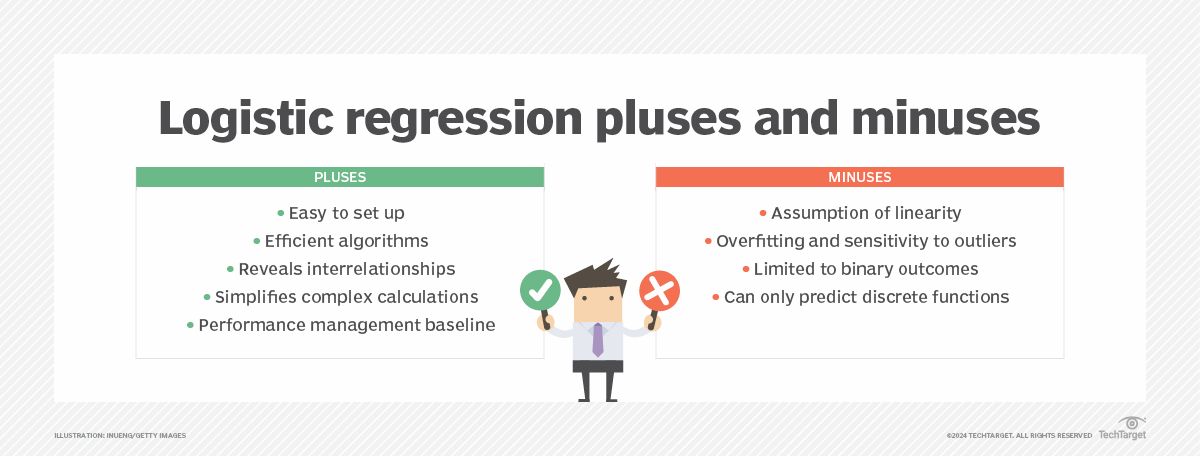 - Limité aux résultats binaires. La régression logistique est limitée à la modélisation de la classification et des résultats binaires et peut ne pas convenir aux scénarios avec des résultats non binaires sans modifications telles que la régression logistique ordinale.