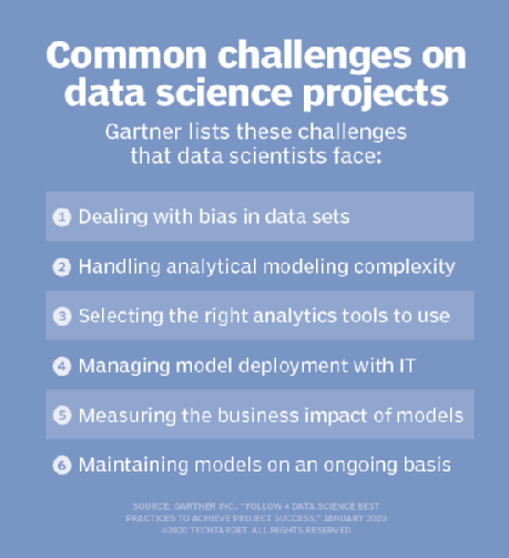 Trouver les bonnes données à analyser est un autre défi. Dans un rapport publié en janvier 2020, l'analyste Afraz Jaffri de Gartner et quatre de ses collègues du cabinet de conseil ont également cité le choix des bons outils, la gestion du déploiement des modèles analytiques, la quantification de la valeur commerciale et la maintenance des modèles comme des obstacles importants.
