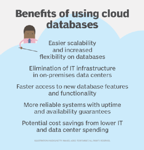 Comme d'autres systèmes informatiques, les déploiements de bases de données s'orientent clairement vers le cloud. Dans un rapport publié en décembre 2023, Gartner indique que les bases de données cloud représentent désormais plus de la moitié du chiffre d'affaires total des systèmes de gestion de bases de données (SGBD) dans le monde et la quasi-totalité de la croissance du chiffre d'affaires sur ce marché. De plus, dans une enquête menée fin 2023 auprès de 753 utilisateurs du cloud par le fournisseur d'outils de gestion informatique Flexera, 65 % ont déclaré que leur organisation utilisait des entrepôts de données dans le cloud public, tandis que 57 % avaient adopté des services de bases de données relationnelles basés sur le cloud et 44 % utilisaient des bases de données NoSQL. Tous ces chiffres ont considérablement augmenté par rapport à la précédente édition de l'enquête annuelle.