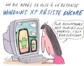 Avec 16,94 % du marché au 1er avril 2015, Windows XP reste le deuxième système d’exploitation utilisé sur PC, derrière Windows 7 à 58,04 % mais devant Windows 8 (3,52 %) et Windows 8.1 (10,55 %).