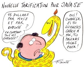 À la fin du mois de janvier, Oracle a annoncé une nouvelle offre de support pour Java SE. Son prix n’est plus calculé sur le volume de postes de travail et de processeurs de serveurs équipés de la licence, mais sur le nombre d’employés dans l’entreprise. Un modèle plus simple selon Oracle, mais bien plus coûteux qu’auparavant.